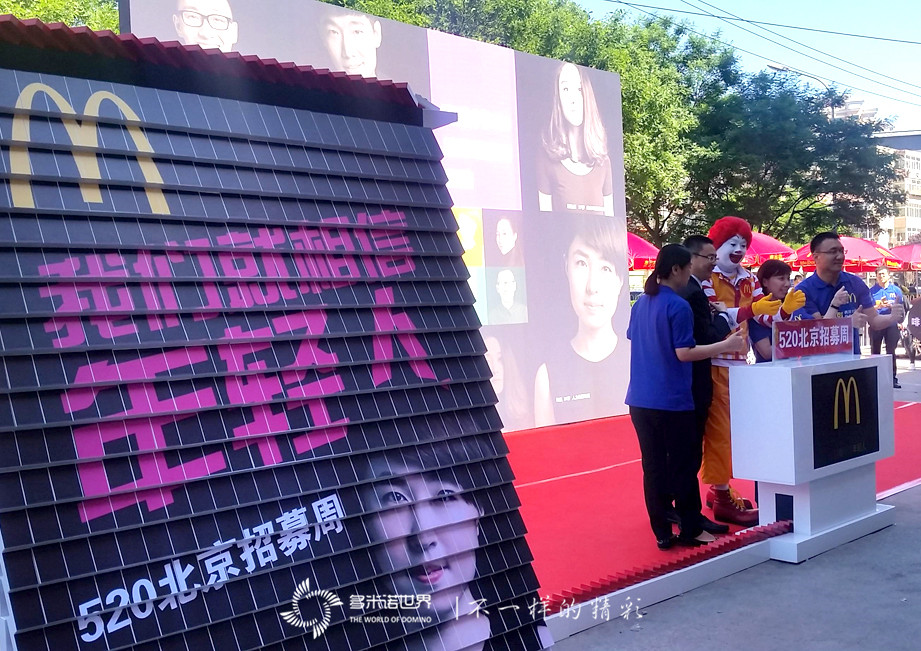 麥當(dāng)勞的520招聘周活動(dòng)自2012年開始,今年已經(jīng)是第五個(gè)年頭。此次繼續(xù)延續(xù)“我們就相信年輕人”的品牌主張,并特別邀請(qǐng)多米諾世界團(tuán)隊(duì),用青春時(shí)尚的多米諾作為此次活動(dòng)的啟動(dòng)儀式。