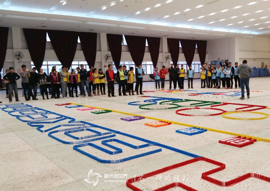 比賽分為四組,每個團隊給自己的組隊取了響亮的名字(雄鷹隊,富強隊,沖鋒隊,夢之隊)和有力的口號,大家根據自己的隊名,開始勾畫著創(chuàng)意,不斷地修改著,計算著用牌的數量,還要搭配顏色,希望把創(chuàng)意做到完美。這邊創(chuàng)意的場面熱鬧,那邊規(guī)定畫面的擺放也在井然有序地開展著。對于初次參與多米諾活動的隊員來說,今天的任務確實不容易,每個團隊都或多或少地出現了意外倒牌的現象,但是大家沒有絲毫的氣餒,表現出頑強的意志,越挫越勇,最終功夫不付有心人,完成了整體圖案的擺放。當最后一個連接點完成的時候,現場寂靜片刻之后,大家不約而同地鼓起了掌,為自己的努力鼓掌,為團隊合作的力量鼓掌,為大家的成果鼓掌。畫面依次展現,所有的骨牌完美呈現,這一刻,緊張的心情得到了釋放,成就感油然而生,歡呼雀躍,留下難忘的合影。