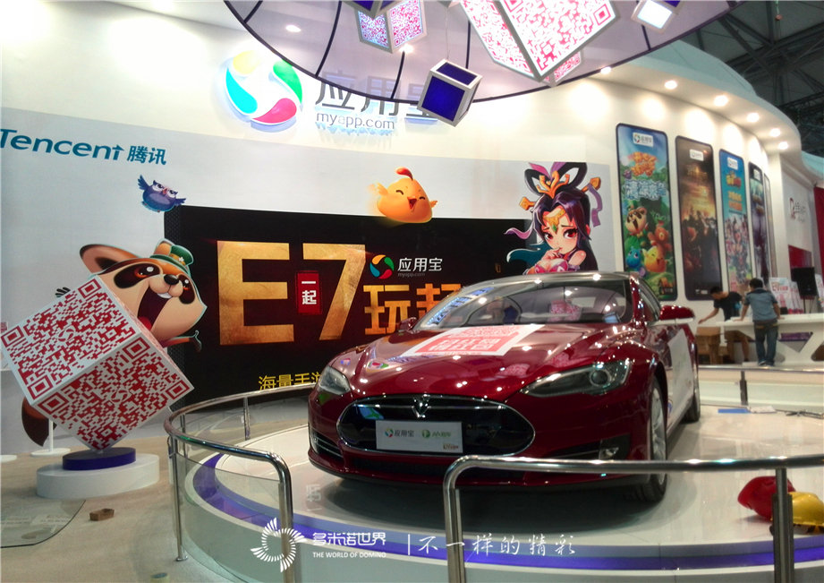 2014年7月31日,第十二屆中國國際數(shù)碼互動娛樂展覽會(ChinaJoy)在上海新國際博覽中心舉行。騰訊首款全民級智能硬件“全民WiFi”首發(fā)現(xiàn)場采用了頗具創(chuàng)意的多米諾骨牌和WiFi機器人相結(jié)合的布局,主辦方特別從北京邀請吉尼斯紀(jì)錄團隊-多米諾世界,策劃實施這個新穎的多米諾啟動儀式。